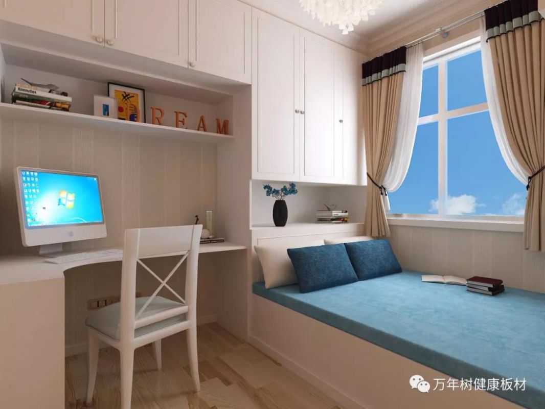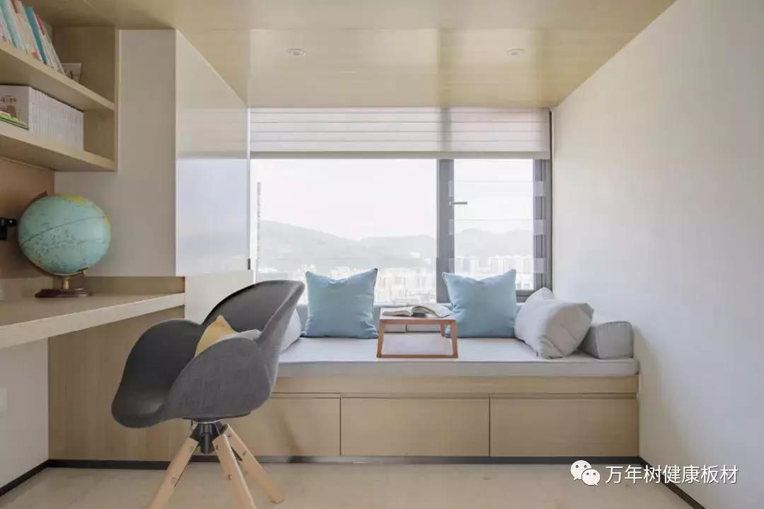 臥室飄窗改造的好,床都會失寵。先從簡單的改造說起吧,如果臥室飄窗窗臺足夠大,直接在窗臺上放張小桌子,幾個抱枕靠墊,一個休閑區(qū)就出來了。喜歡曬太陽,周末的時候就臨窗而臥,俯瞰窗外庸庸碌碌的人群,看看自己打下的天下吧!或在窗臺上放一個柔軟的墊子,躺著坐著任何花式的姿勢都很舒服。萬年樹健康板材一直以來擁有卓越的眼光,努力奔跑在綠色環(huán)保的路上,從未停歇,只為您營造健康舒適的居家環(huán)境。