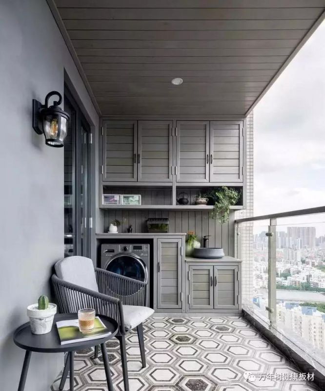 大戶型的陽臺(tái),可以這樣設(shè)計(jì),把陽臺(tái)完全變成一個(gè)功能區(qū),以方便多種操作,比如洗衣、儲(chǔ)物、聚會(huì)、休閑……(地方大就是任性)。
