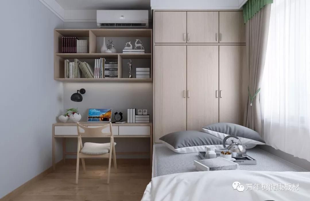 萬年樹健康板材可以幫您實(shí)現(xiàn)衣柜書柜一體化,將書柜與衣柜集成化設(shè)計(jì)成一個(gè)整體,形成一個(gè)龐大的儲物空間,以提高空間的利用效率。